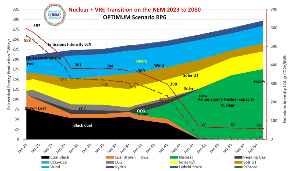 On this page we outline a proposed timeline for the roll out of a nuclear energy plan as shown in the following figure – A Nuclear energy Transition for the NEM 2023–2060. This is the optimum RP6 scenario.