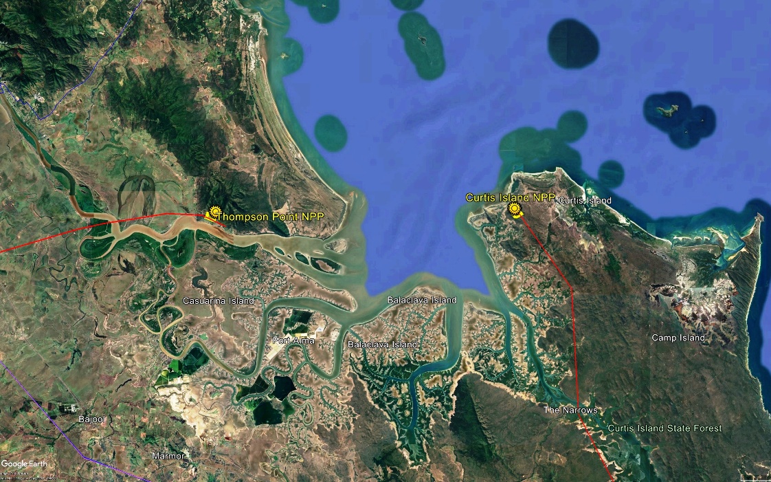 In an effort to reduce the environmental impact upon inland water resources, modern nuclear power plants will use sea water cooling at coastal locations or near the mouths of large estuaries such as the Fitzroy or Mary Rivers.